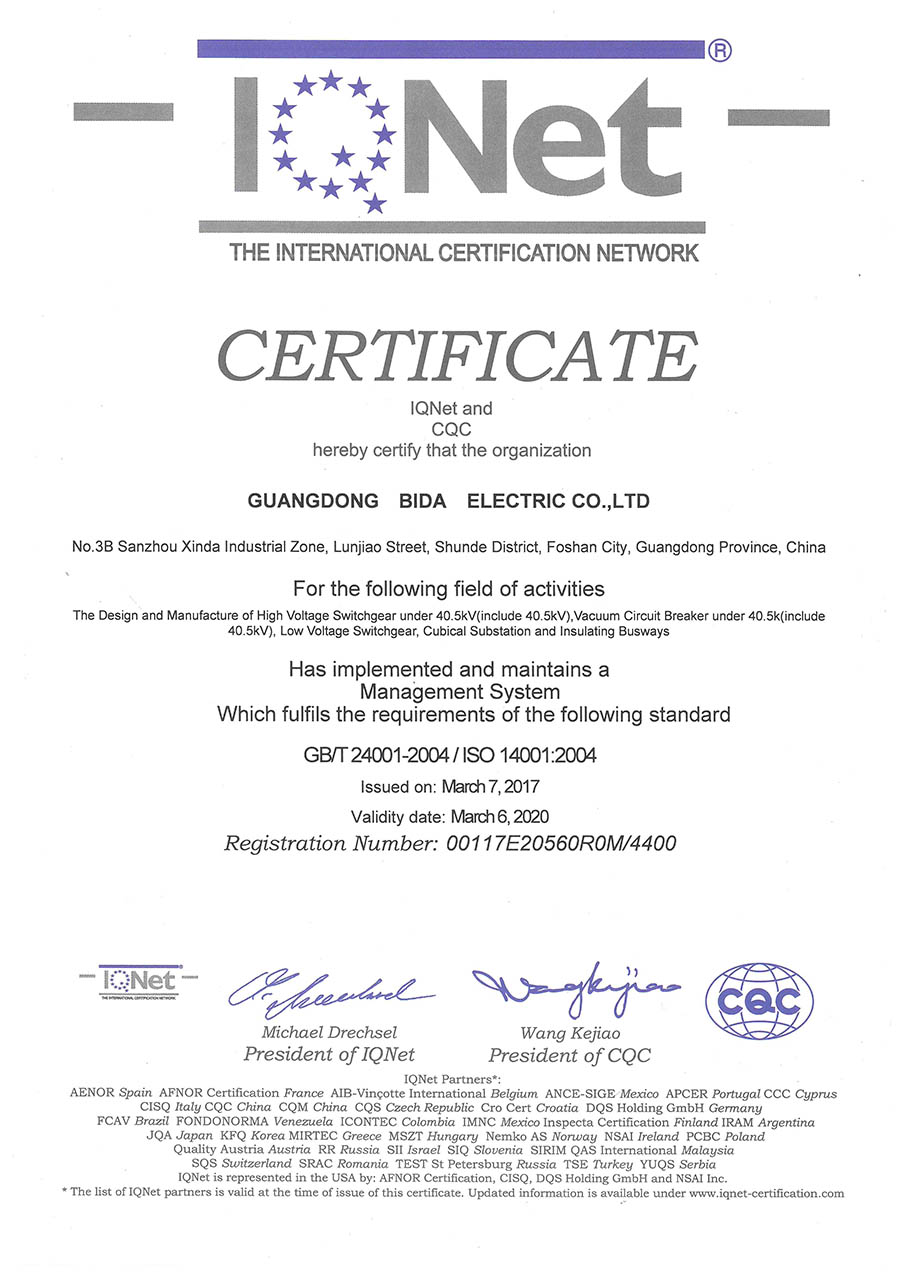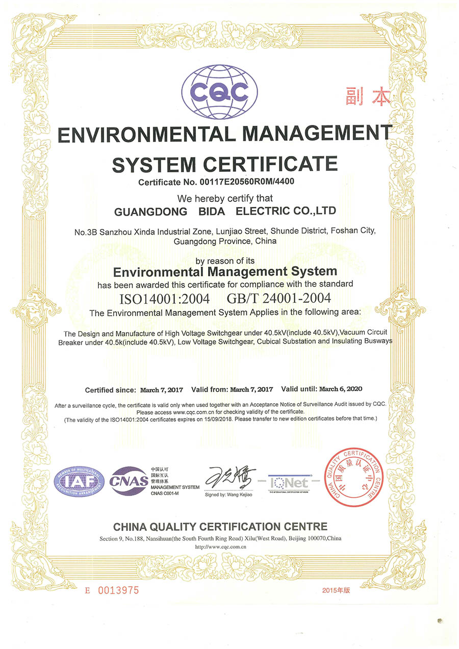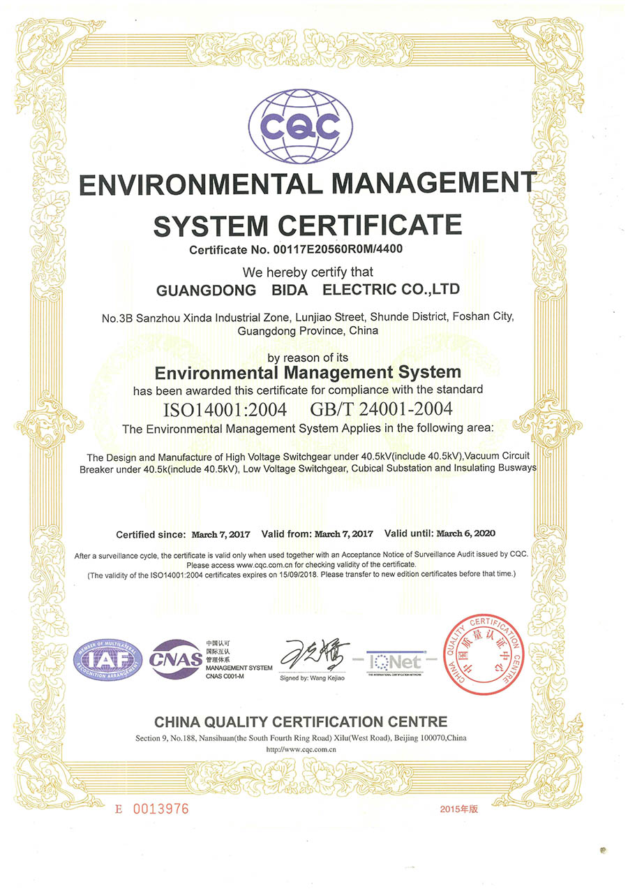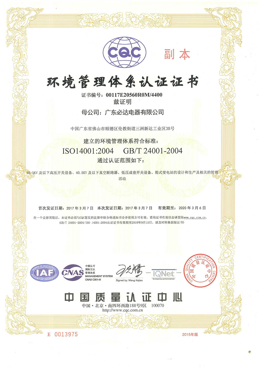 环境管理体系认证证书