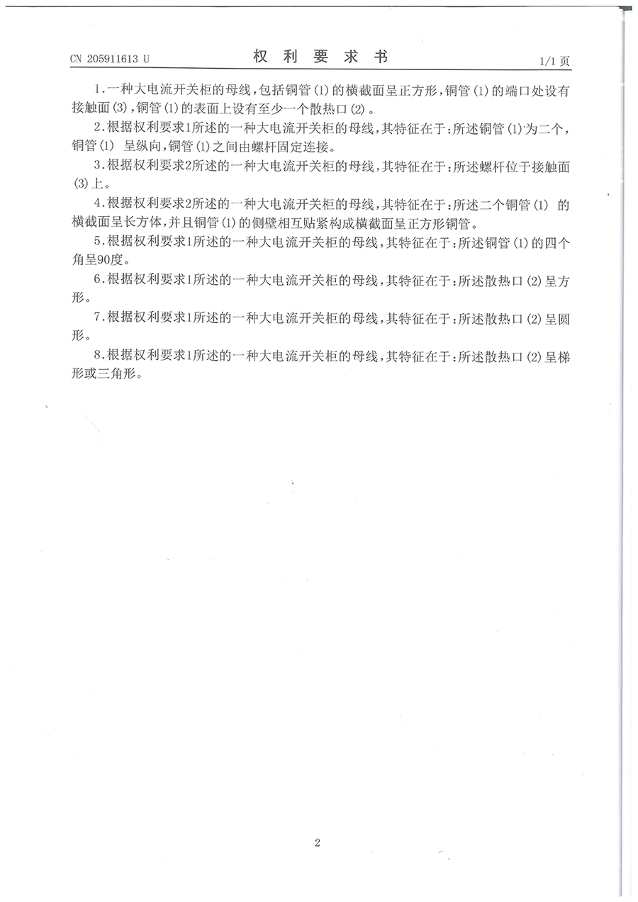 33.一种大电流开关的母线-实用新型专利证书(ZL201620530955.2)2016.06.04