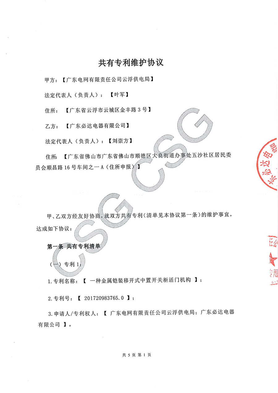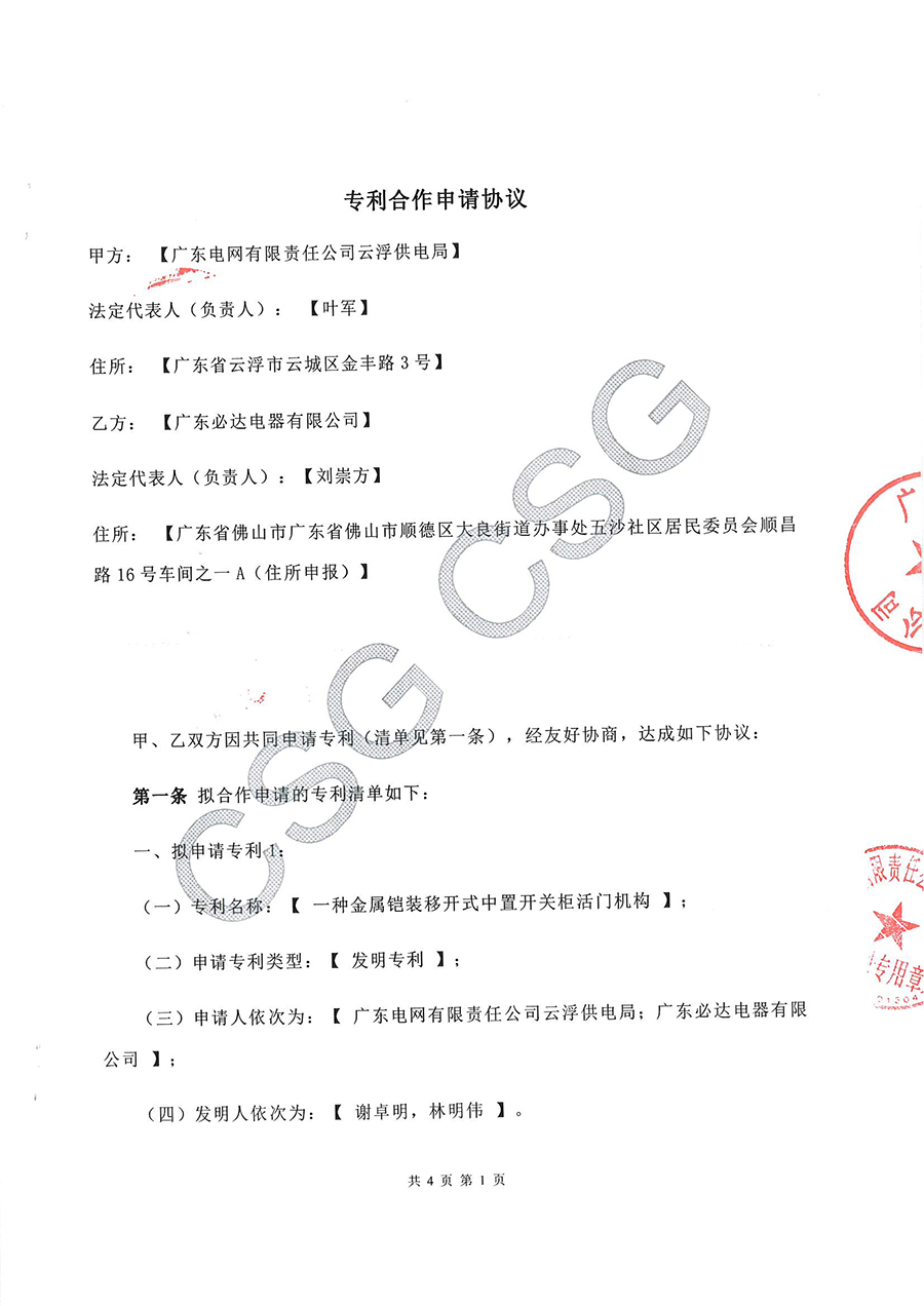 一种金属铠装移开式中置开关柜活门机构发明专利(专利合作申请协议)云浮