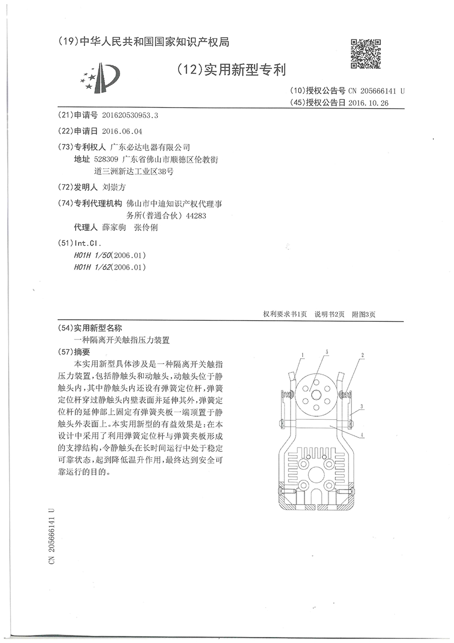 32.一种带散热功能的触指装置-实用新型专利证书(ZL201620530954.8)2016.06.04