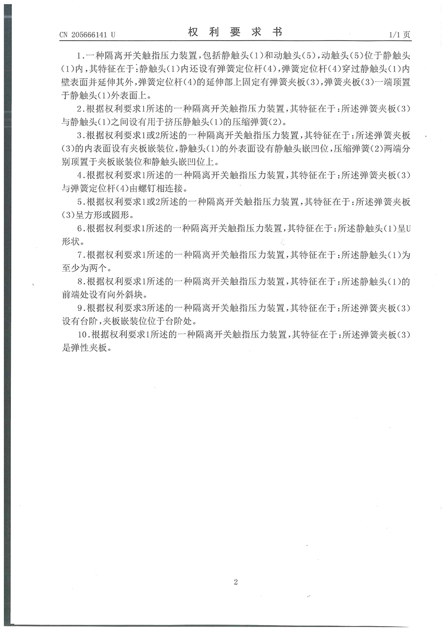 31.一种隔离开关触指压力装置-实用新型专利证书(ZL201620530953.3)2016.06.04
